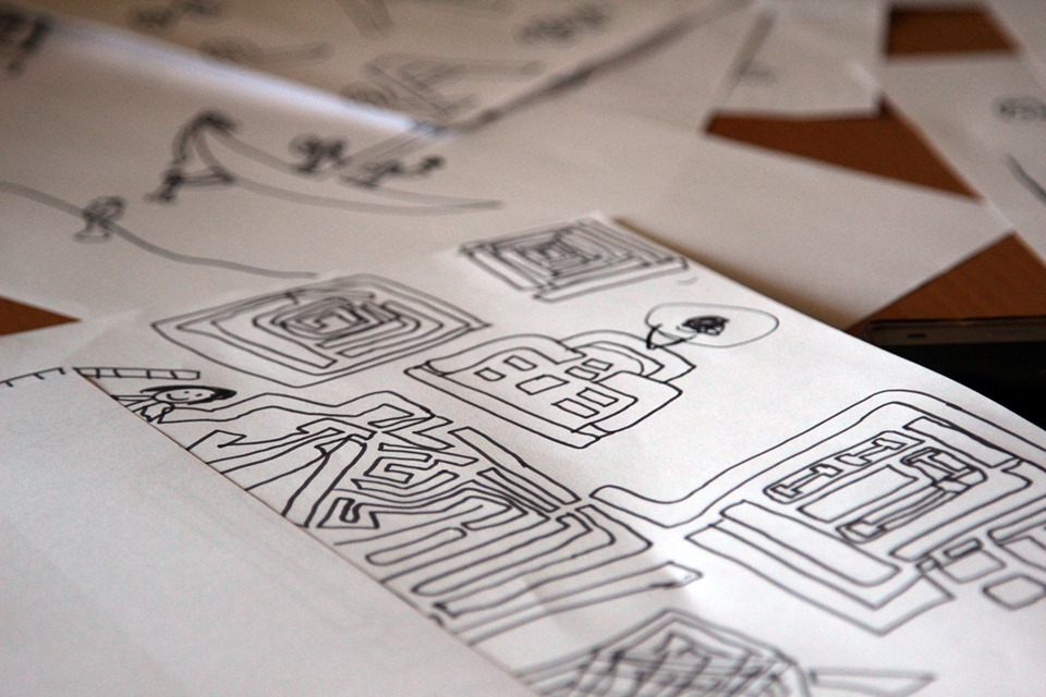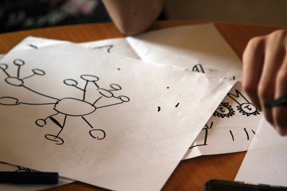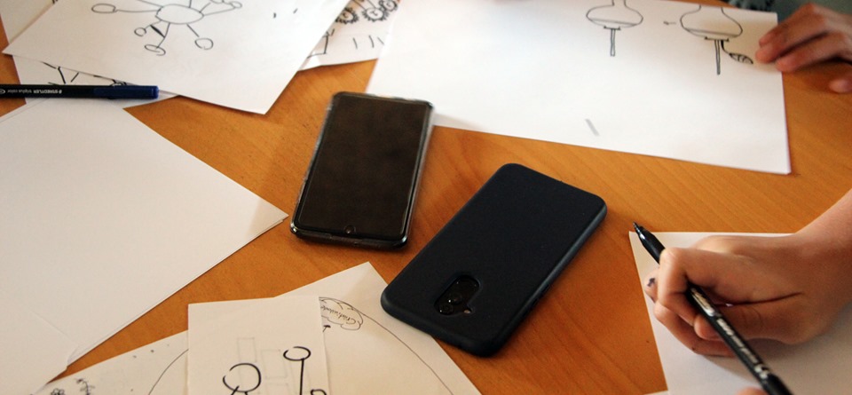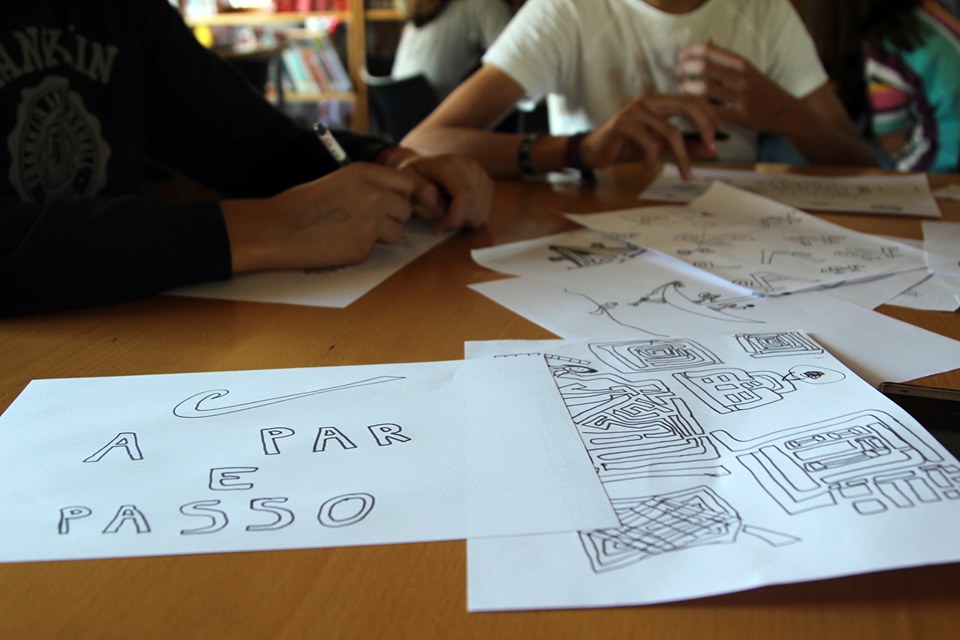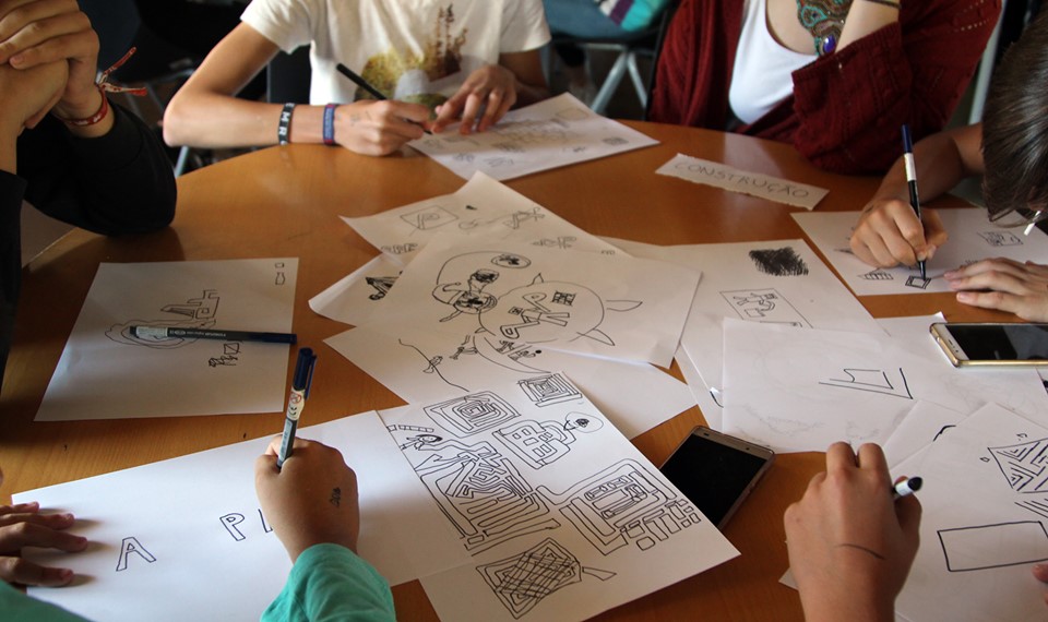 Ao brainstorming, seguiu-se um exercício, na segunda sessão, onde se começaram a desenhar elementos que refletem o projeto. Foi um processo bastante dinâmico, criativo e com uma dedicação incrível por parte de todas/todos! No final, a designer devolveu à turma algumas ideias (ainda em bruto) que resultaram do trabalho por elas/eles desenvolvido. Estamos ansiosas/os pelo resultado final deste processo colaborativo!
