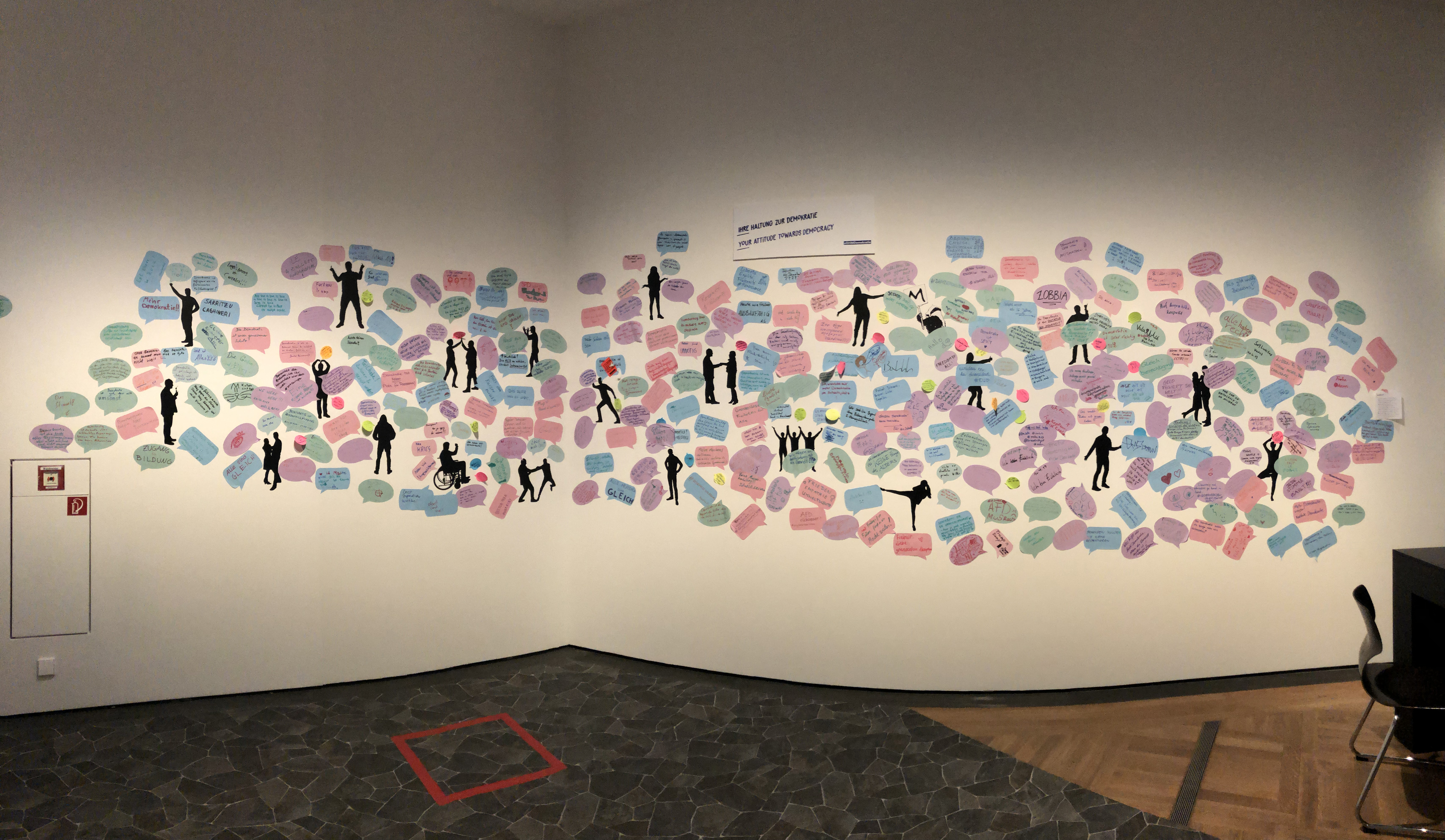 A exposição está estruturada em sete salas temáticas diferentes, onde os visitantes são convidados a pensar criticamente e experimentar sobre o que faz a democracia funcionar.